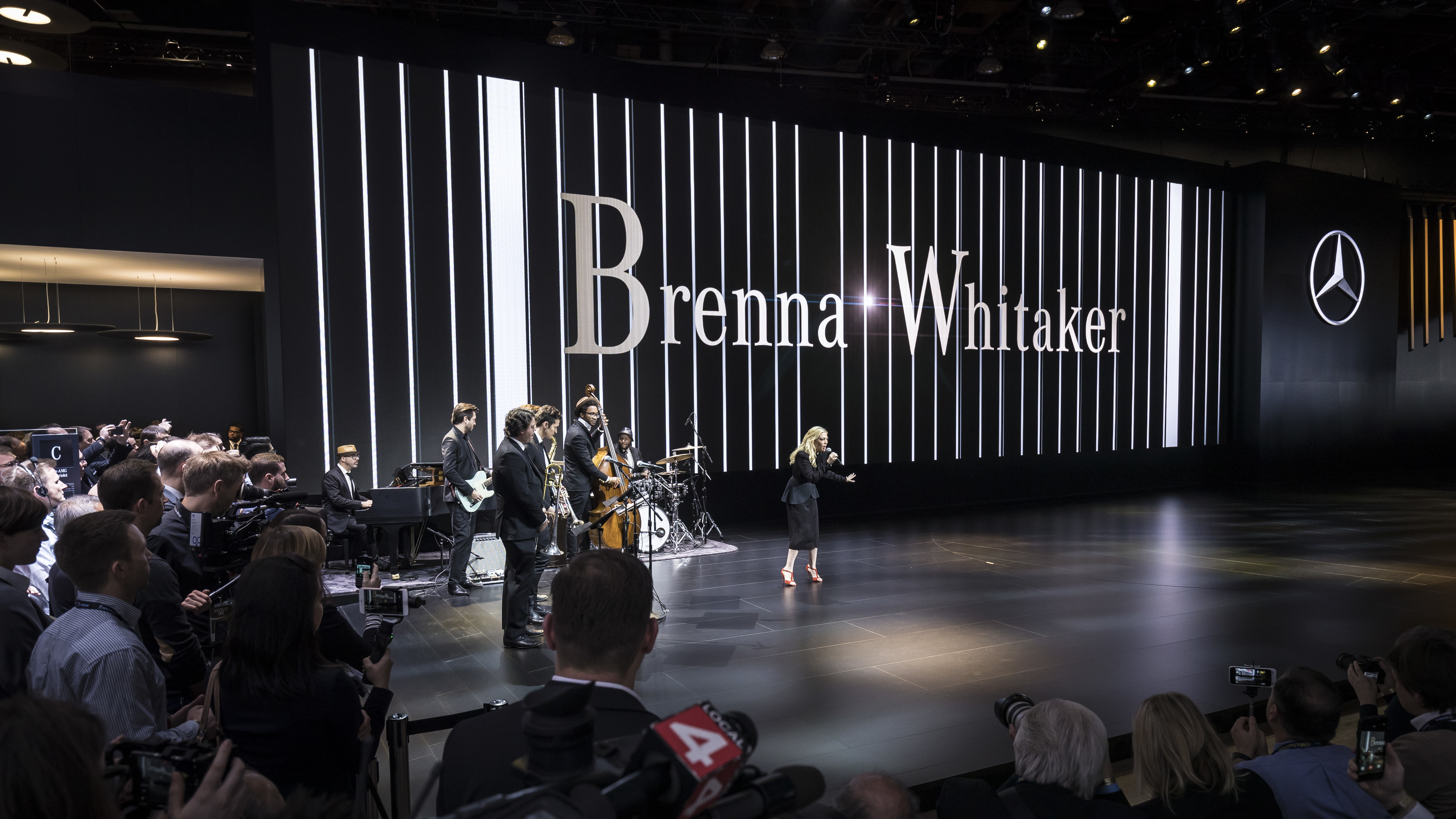 Brenna Whitaker, Jazz-Sängerin bei ihrem Auftritt auf der Mercedes-Benz Pressekonferenz anlässlich der Premiere des neuen E-Klasse Coupes. ;Brenna Whitaker, jazz singer is performing and presenting the new E-Class Coupe.;