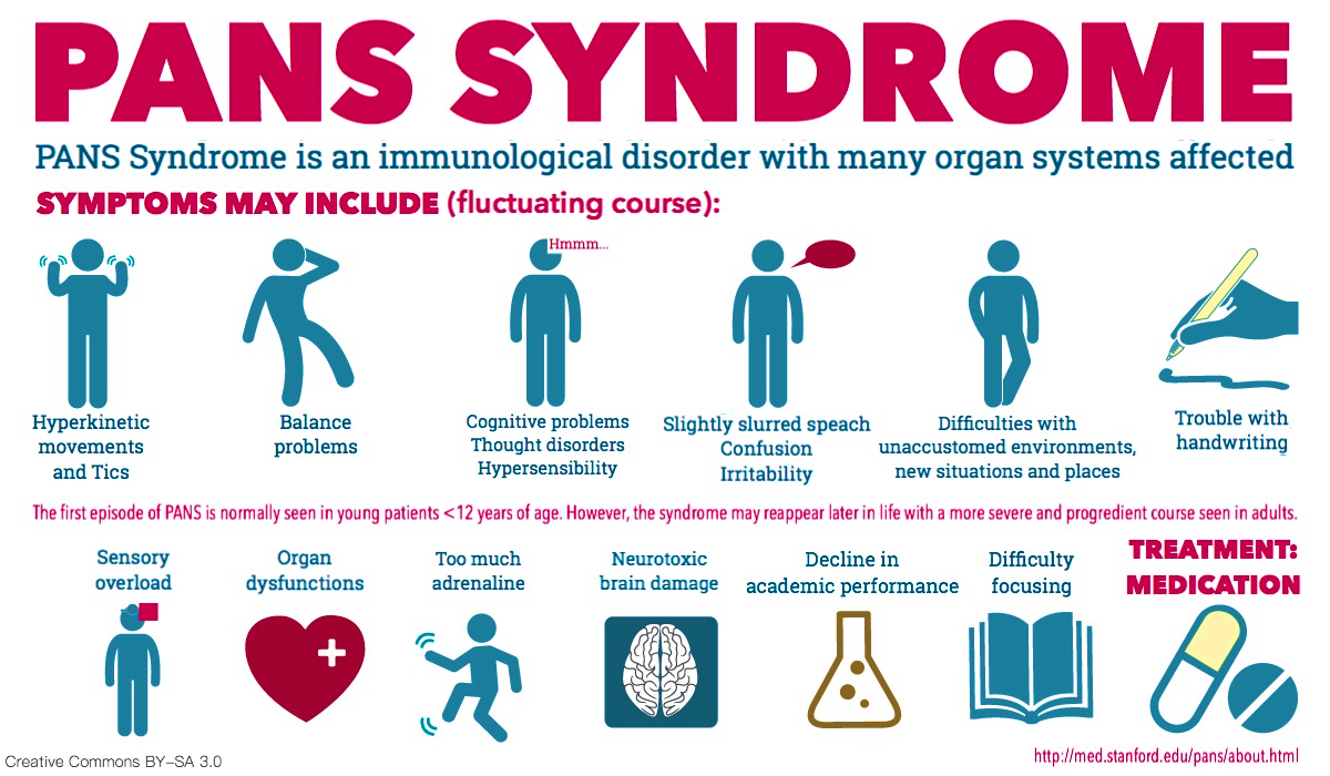 Laienfreundliche Darstellung der Hauptsymptome des PANS Syndroms (englisch, deutsch gibt es keine brauchbare Alternative) Die Datei ist abgerufen unter einer Creative Commons Lizenzierung vom Typ BY-SA 3.0
